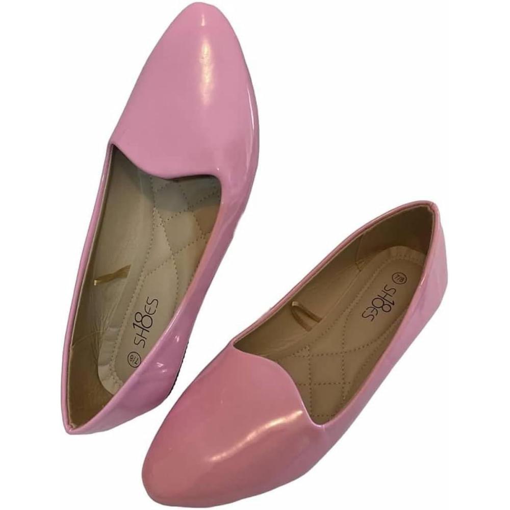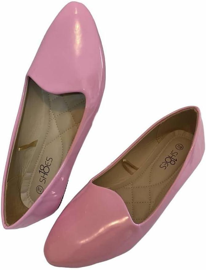 Shoes8teen Womens Ballerina Ballet Flats Shoes Leopard & Solids 14 Colors(1800 Pink Patent)